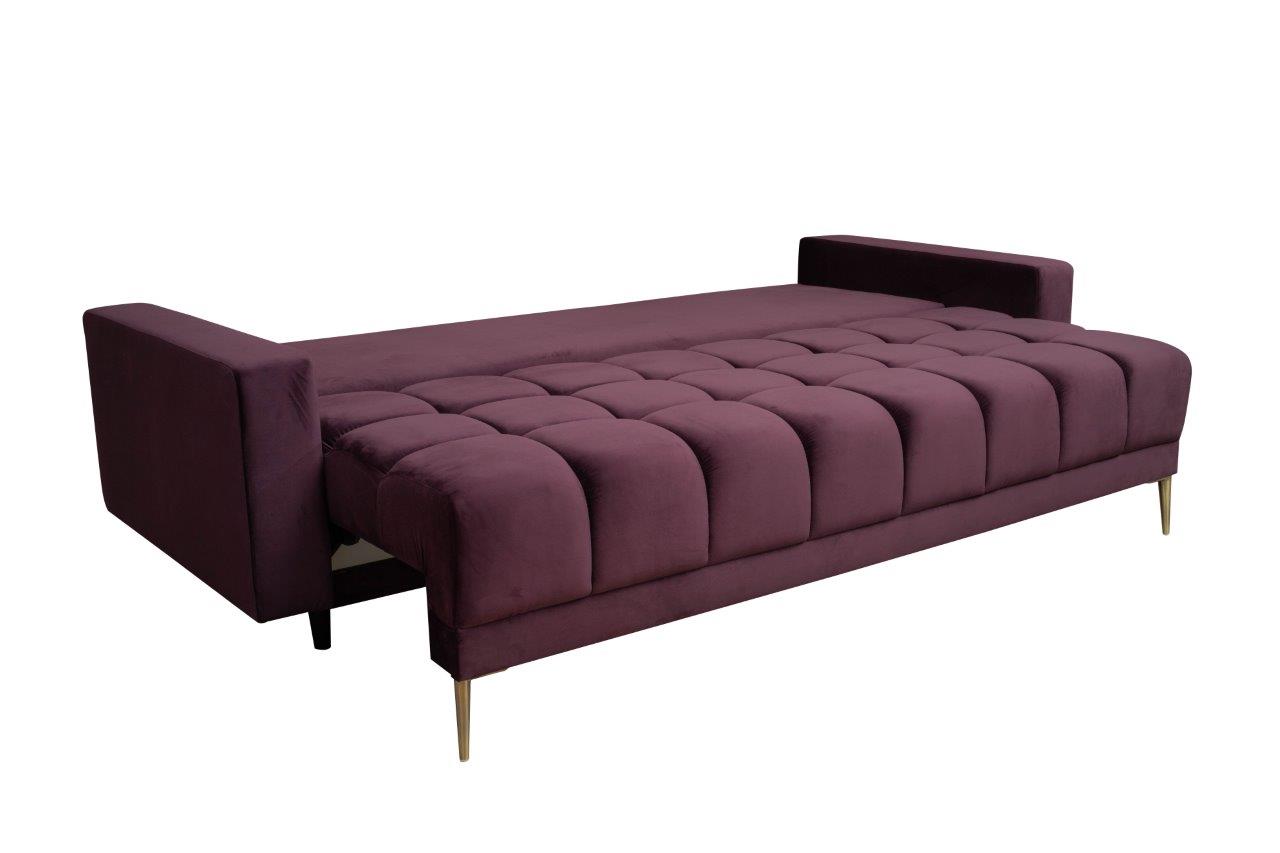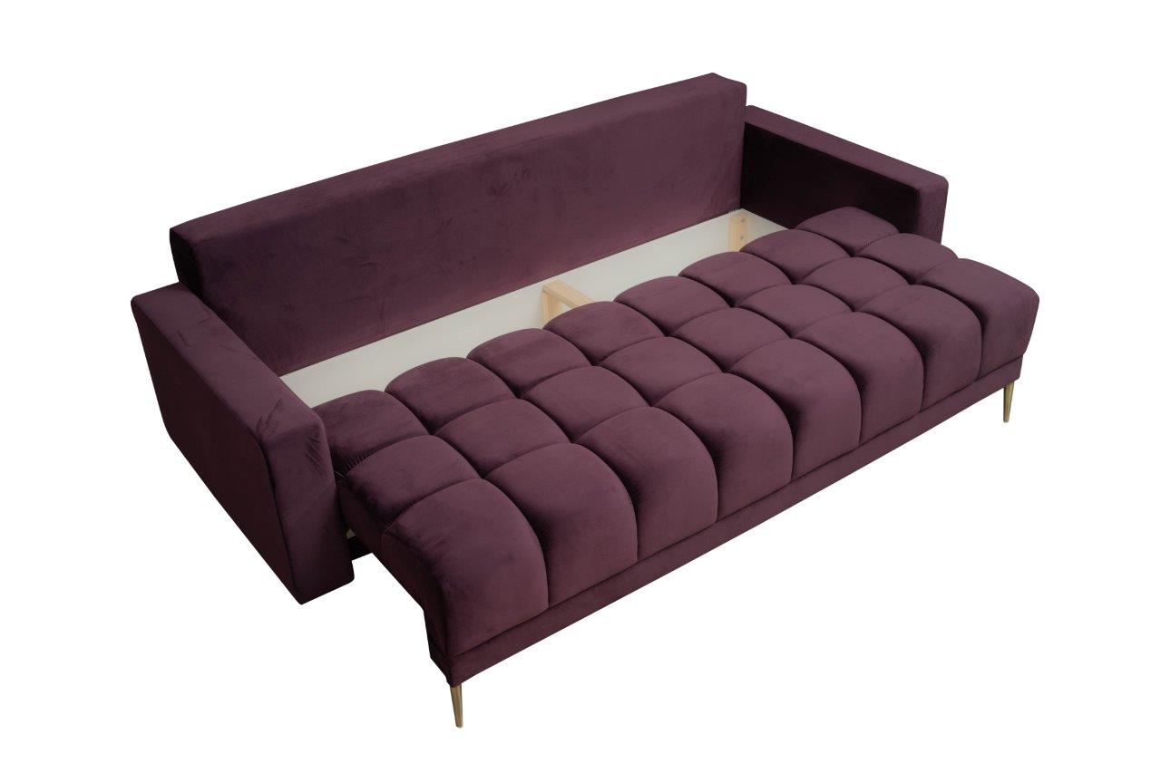 Rozkładana sofa Prince została wykonana z najwyższej jakości materiałów. Tkanina Riviera w pięknym, śliwkowym kolorze jest nie tylko trwała, ale także miła w dotyku. To materiał, który świetnie komponuje się z różnymi stylami wnętrz, dodając im uroku i klasy.