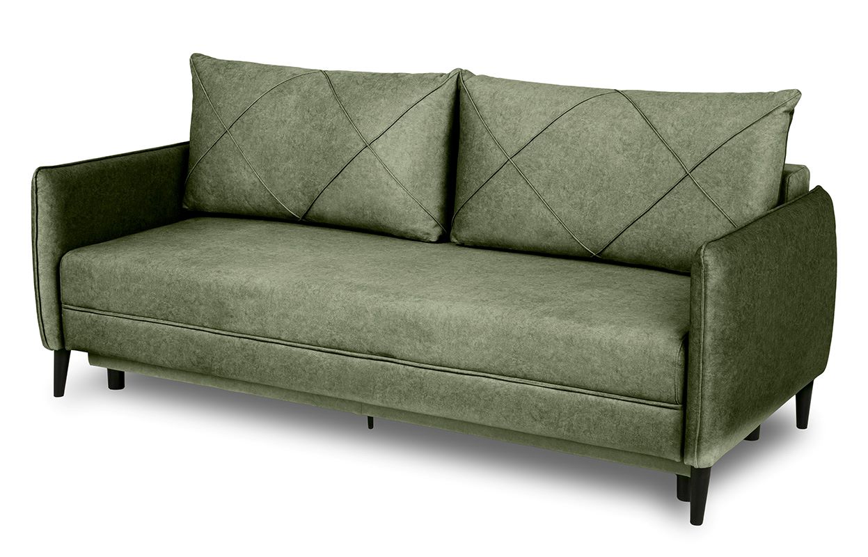 Sofa z funkcją spania Savana to trzyosobowa, rozkładana sofa z pojemnikiem na pościel. Komfort użytkowania zapewnia konstrukcja z sprężyny falistej oraz wysokiej jakości pianki T30/T38. Sofa wykonana w tkaninie Whisper. Jako element dekoracyjny zastosowano przeszycia na poduszkach oraz ozdobne lamówki. Sposób rozkładania to popularny system DL. Po rozłożeniu otrzymujemy powierzchnie spania o wymiarach 190x143 cm. Mebel w komplecie z dwoma poduszkami oparciowymi. Sofa na nóżkach drewnianych w kolorze czarnym. Siedzisko na wysokości 44 cm od podłogi.