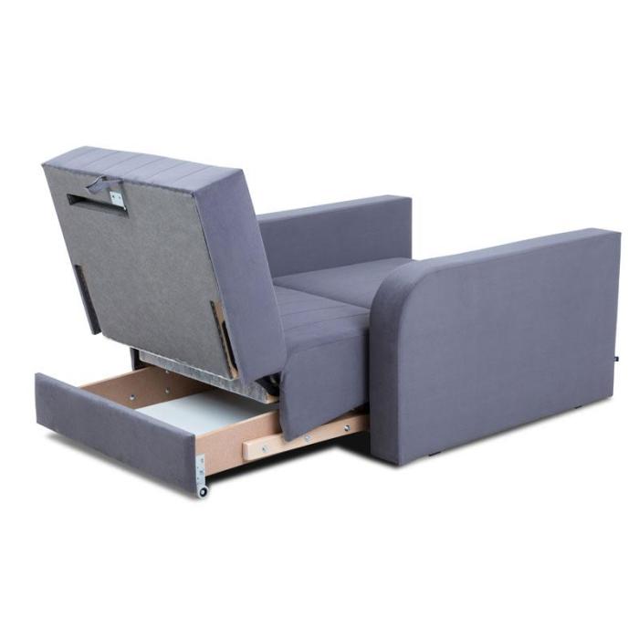 Sposób rozkładania to popularny w sofach "Wózek". Rozkładanie rozpoczynamy od wysunięcia do przodu, ukrytego pod siedziskiem wózka. Po rozłożeniu powierzchnia spania wynosi 81x185 cm. Zaleta tego typu rozkładania jest, brak konieczności odsuwania sofy od ściany. Kanapa posiada pojemnik na pościel, w którym zmieścimy kołdrę i poduszkę zapewniając porządek w pomieszczeniu.