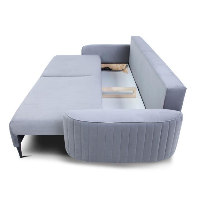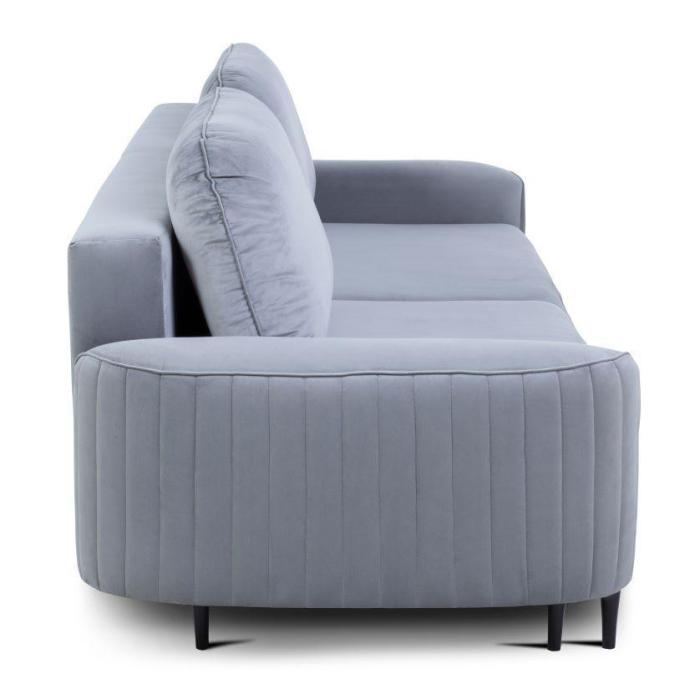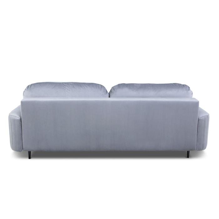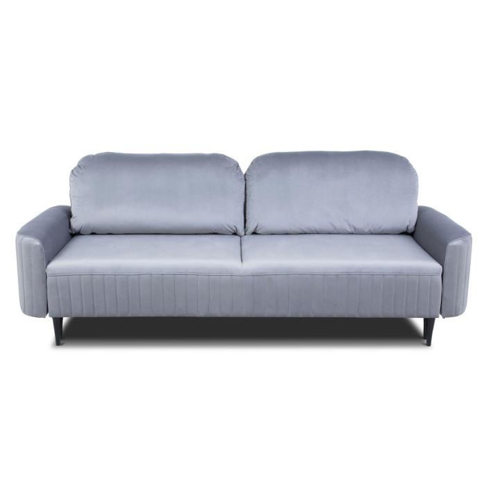Sofa Vena z funkcją spania oraz pojemnikiem na pościel. Wykonana w tkaninie Velutto w kolorze jasny popiel. Wygodne oparcie to dwie poduszki oparciowe. W siedzisku zastosowano sprężyny faliste, które znacznie podnoszą komfort wypoczynku. Jako element dekoracyjny zastosowano ozdobne przeszycia na bokach sofy. Nóżki sofy Vena zostały wykonane z drewna i wybarwione na kolor czarny.