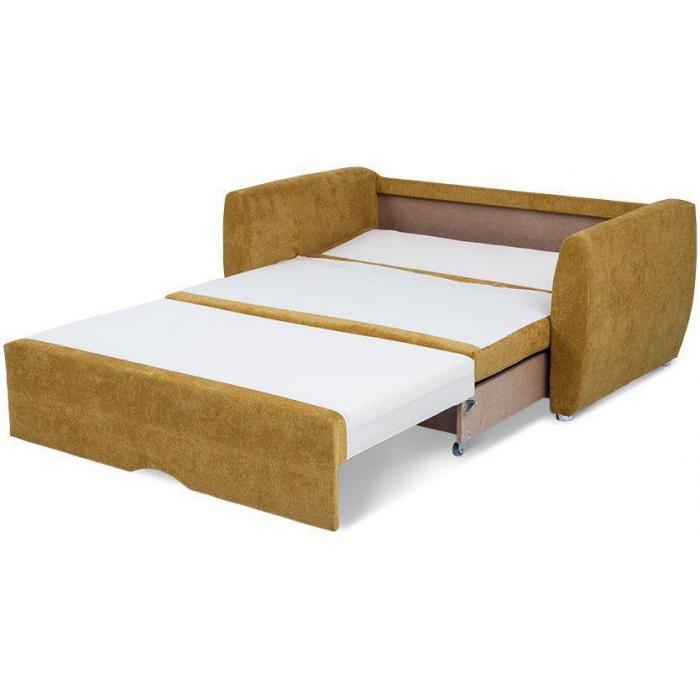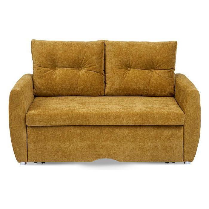 Sofa Svea to synonim prawdziwego wypoczynku. Z myślą o pełnym relaksie zastosowano w siedzisku sprężyny typu bonell oraz dwie duże, miękkie poduszki na oparciu, które zapewniają wysoki komfort użytkowania. Dzięki zastosowaniu wytrzymałych kółek Svea sofa rozkłada się i pełni funkcję wygodnego łóżka o wymiarach 120x186 cm. Praktyczny pojemnik na przechowywanie pościeli, znajdujący się na spodzie kanapy, zapewnia większą funkcjonalność i pozwala na optymalne zagospodarowanie dostępnej przestrzeni. Sofa Svea Abra w kolorze musztardowym będzie wyrazistym akcentem kolorystycznym w salonie lub oryginalnym dopełnieniem odważnej aranżacji wnętrza. Elementem wykańczającym ten mebel są okrągłe nóżki w odcieniu chromu, które sprawiają, że sofa Svea nabiera subtelnej elegancji.