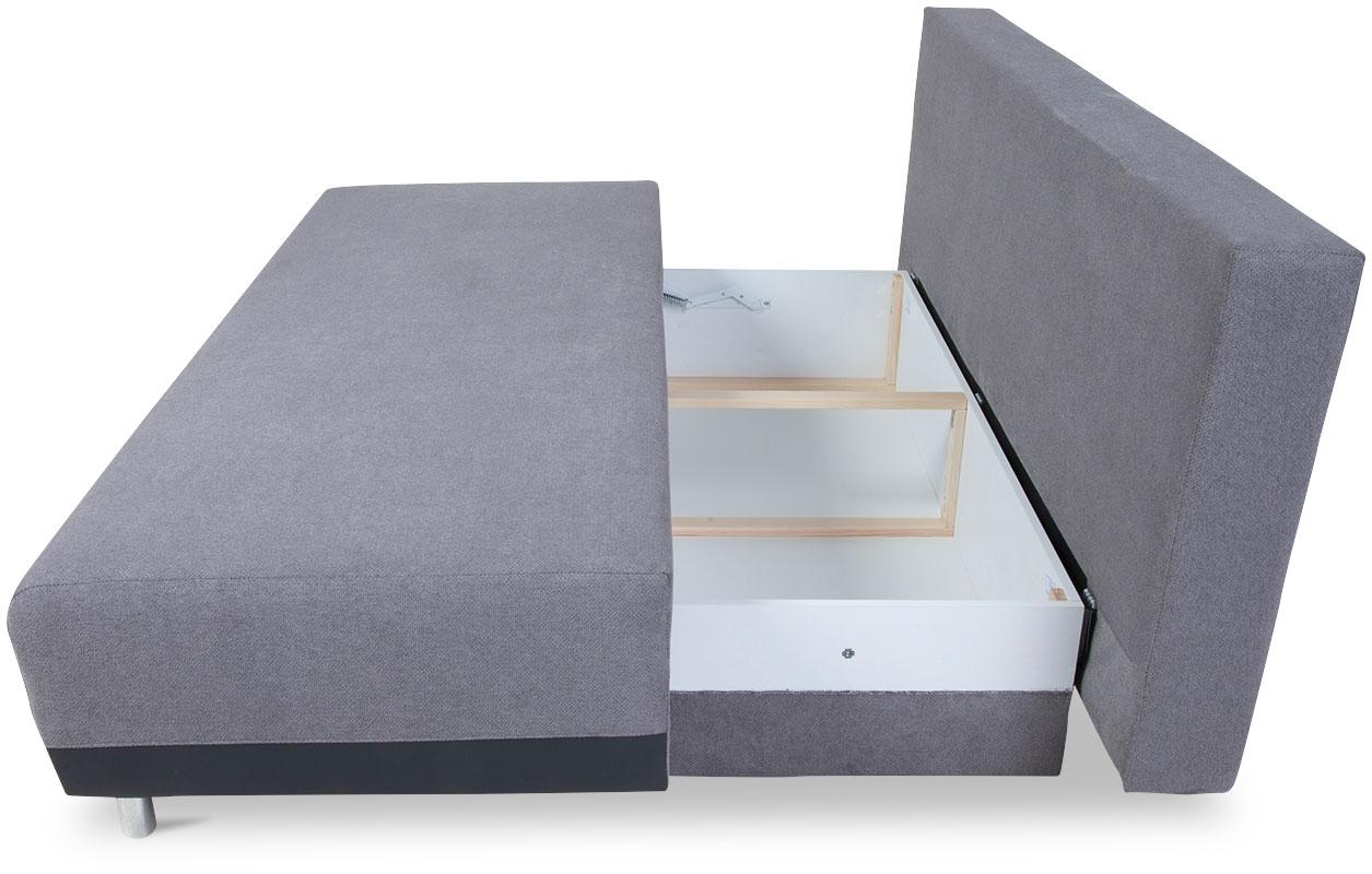 Sposób rozkładania DL to szybki i prosty sposób - wystarczy podnieść siedzisko do góry i przesunąć do przodu, a w miejsce siedziska kładziemy oparcie. Po rozłożeniu powierzchnia spania wynosi 159x200cm. Kanapa posiada pojemnik na pościel, w którym zmieścimy kołdrę i poduszkę zapewniając porządek w pomieszczeniu.