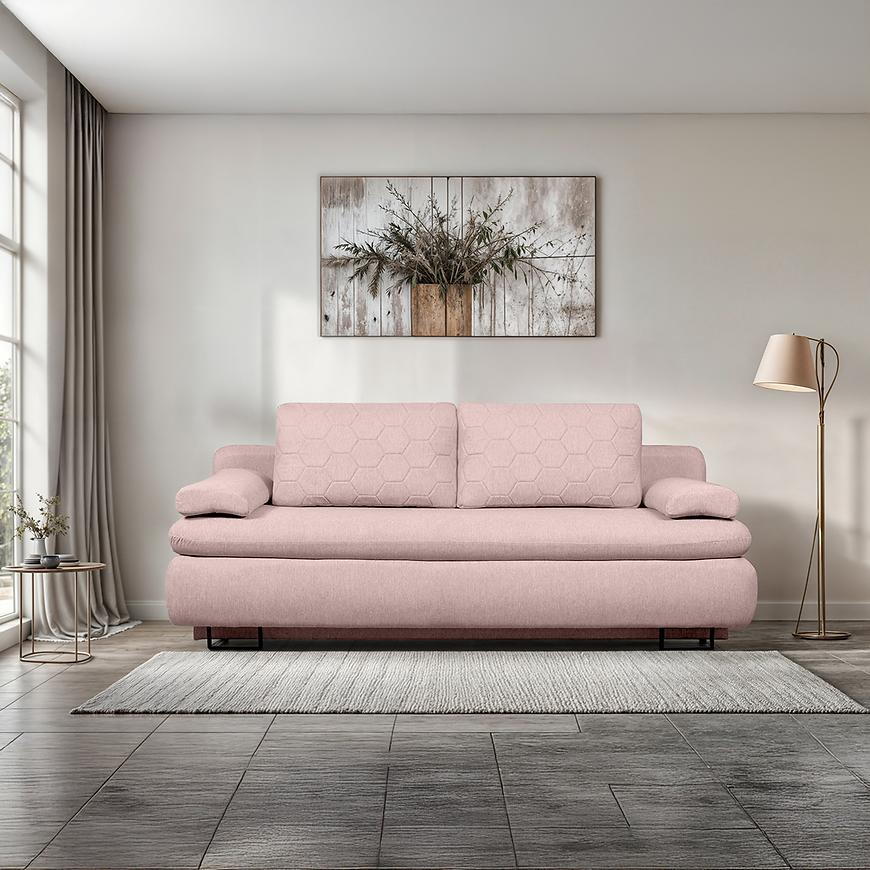 Sofa Tori w kolorze różowym to połączenie elegancji, funkcjonalności i nowoczesnych rozwiązań, które sprawdzą się zarówno w salonie, jak i w pokoju gościnnym. Dzięki funkcji spania i dużej powierzchni spania 150x200 cm, sofa z powodzeniem zastąpi tradycyjne łóżko, zapewniając komfortowy wypoczynek każdej nocy.