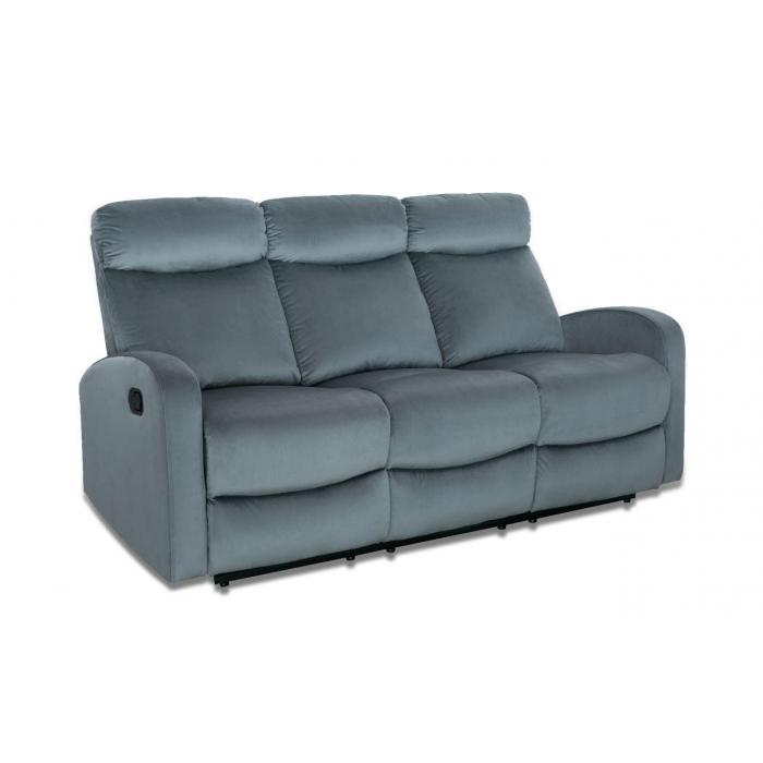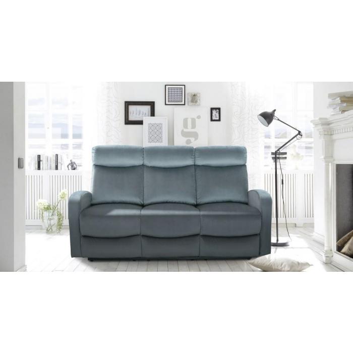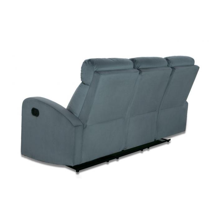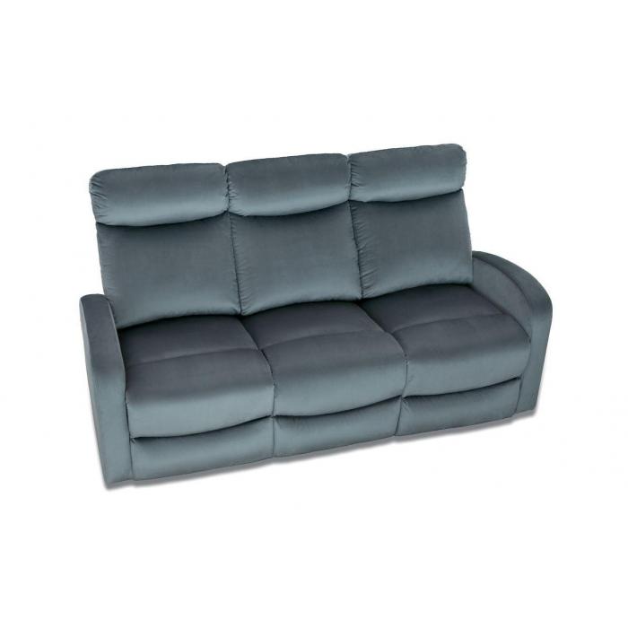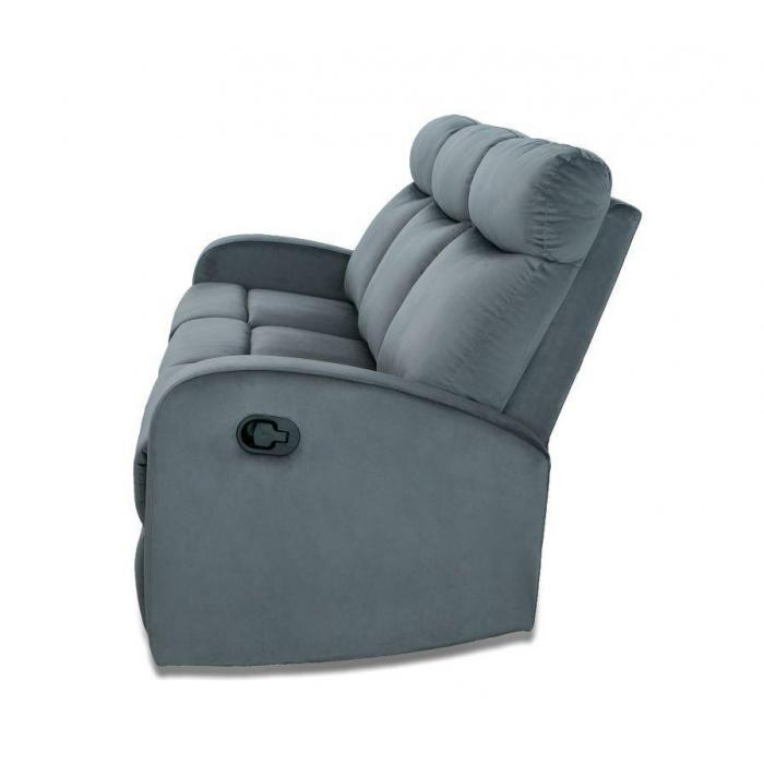 Sofa Genua z funkcja relaks tapicerowana jest aksamitną tkaniną w kolorze popielatym, posiada dwa ręcznie rozkładane podnóżki zapewniające komfort siedzenia. Wystarczy pociągnąć za uchwyt, aby sterować podnóżkiem. Możesz zatrzymać się w jednej z trzech idealnych pozycji.
