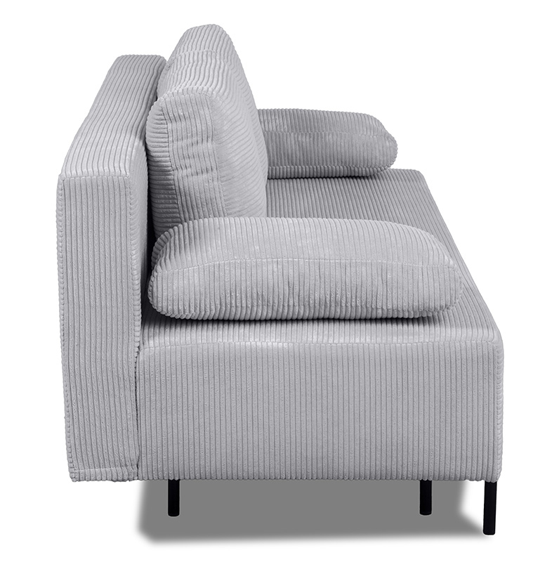 Wykonana z tkaniny Poso w kolorze popielatym, sofa Alisa prezentuje się elegancko i nowocześnie. Tkanina Poso to sztruks o wyrazistych, grubych prążkach, który dodaje sofie charakteru i głębi. Jest miękka, trójwymiarowa i bardzo przyjemna w dotyku, a jednocześnie wytrzymała i odporna na zużycie, co gwarantuje długotrwałe użytkowanie. Neutralny popielaty kolor sprawia, że sofa doskonale komponuje się z różnymi aranżacjami wnętrz, dodając im elegancji i ciepła.