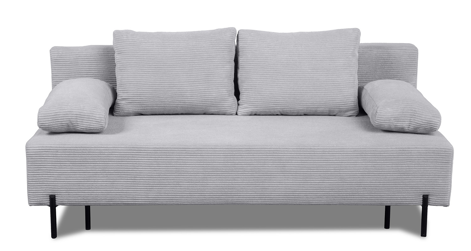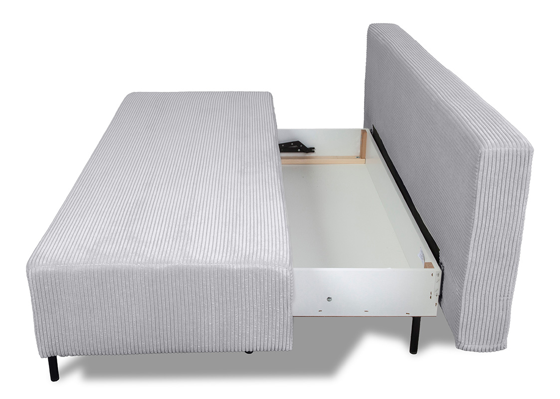 Dodatkową praktyczną cechą sofy Alisa jest pojemnik na pościel. Przestronny i łatwo dostępny schowek pozwala na przechowywanie pościeli, koców czy poduszek, co pomaga utrzymać porządek w pomieszczeniu. Pojemnik ten jest nie tylko funkcjonalny, ale również dyskretnie ukryty, co nie zaburza estetyki mebla.