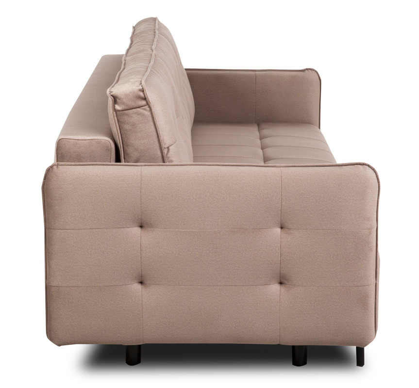 Sofa wykonana jest w tkaninie Element w kolorze beżowym. Element to welurowa tkanina, miła i przyjemna w dotyku, charakteryzująca się jednolitą strukturą oraz dużą wytrzymałością. Wyprodukowana w technologii Water Blocked, tkanina ogranicza wchłanianie rozlanych płynów, co sprawia, że utrzymanie jej w czystości staje się łatwe.