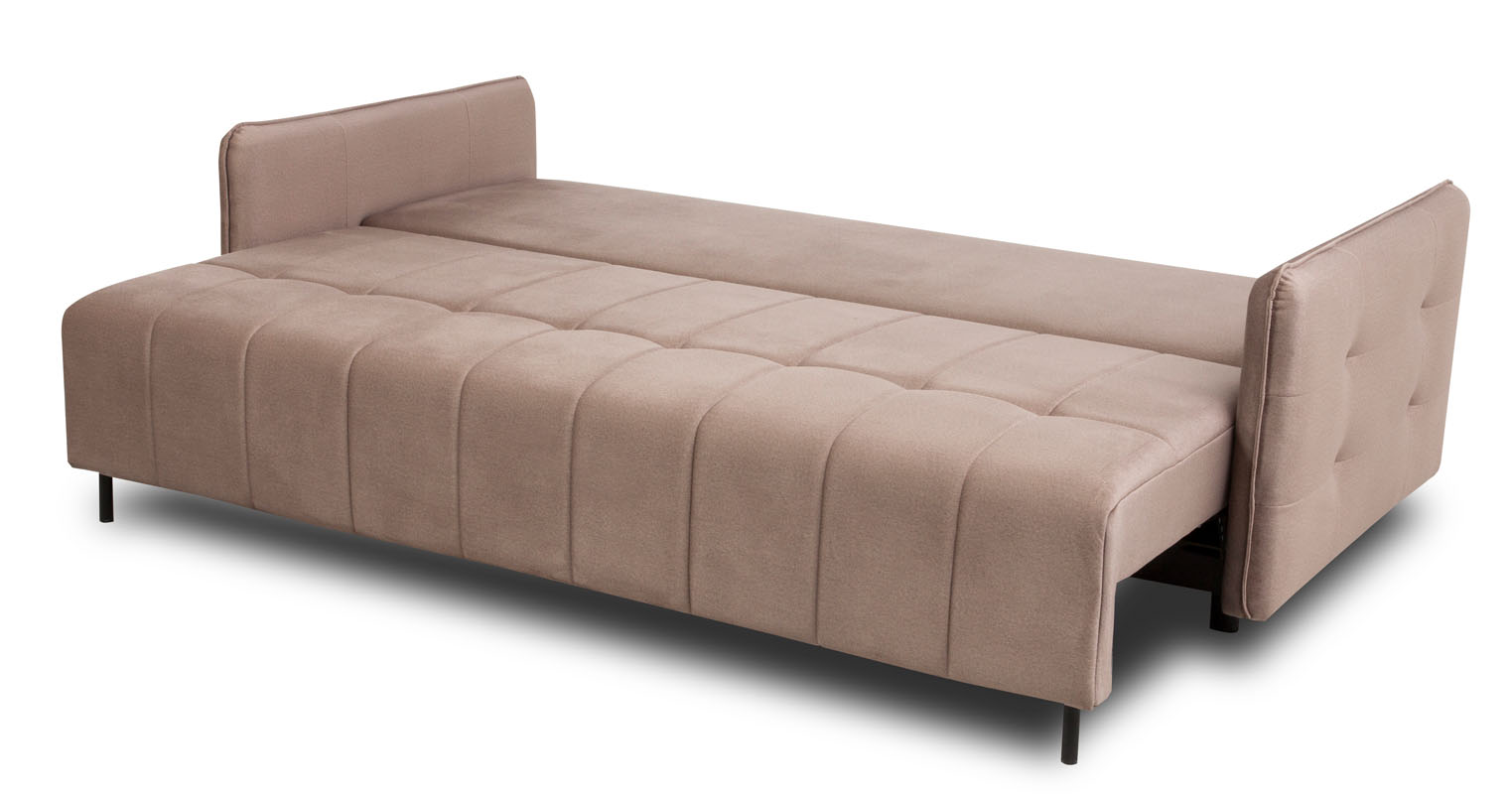 Jedną z kluczowych cech sofy Auris jest jej funkcja spania, umożliwiająca błyskawiczne przekształcenie mebla w wygodne łóżko. Automat wspomagający rozkładanie oraz pojemnik na pościel, umieszczony pod siedziskiem, sprawiają, że korzystanie z sofy jest nie tylko komfortowe, ale również praktyczne. Sposób rozkładania typu DL zapewnia łatwość obsługi, a duża powierzchnia spania o wymiarach 142x198 cm gwarantuje wygodę dla każdego użytkownika.