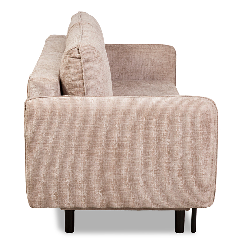 Bolivia jest tapicerowana tkaniną Sierra w eleganckim, beżowym kolorze, który dodaje wnętrzu przytulności i klasy. Plecy sofy również zostały w całości pokryte tkaniną, co pozwala na ustawienie mebla w dowolnym miejscu w pomieszczeniu, nie tylko pod ścianą. Dodatkowym elementem dekoracyjnym są ozdobne lamówki zastosowane na siedzisku, poduszkach oraz bokach sofy, które podkreślają jej nowoczesny charakter.