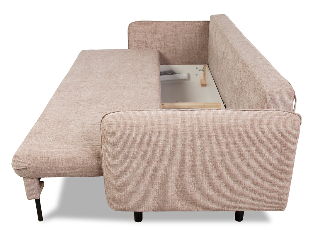 Sofa Bolivia jest wyposażona w pojemny schowek na pościel, co dodatkowo zwiększa jej funkcjonalność. To doskonałe rozwiązanie dla osób ceniących porządek i wygodę, umożliwiające przechowywanie niezbędnych rzeczy w zasięgu ręki, bez konieczności korzystania z dodatkowych szafek czy komód.