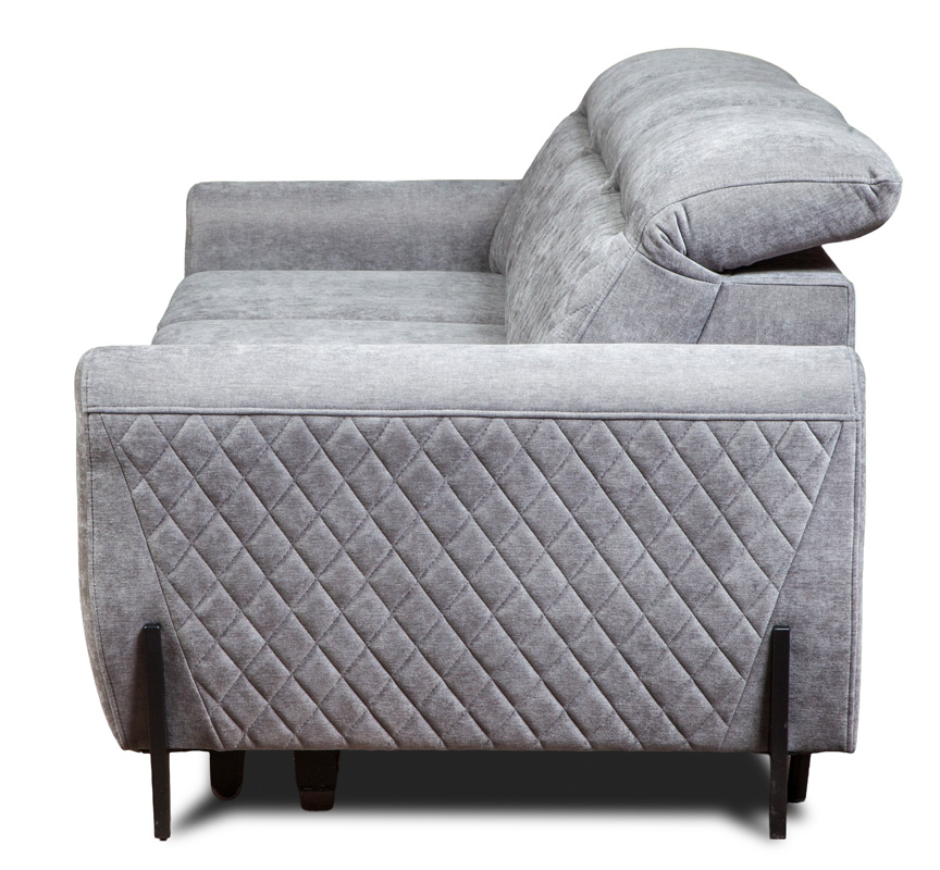 Estetykę sofy podkreślają ozdobne przeszycia na poduszkach oparciowych oraz na bokach mebla, które dodają mu elegancji i sprawiają, że prezentuje się efektownie nawet w oszczędnych stylizacjach wnętrz.