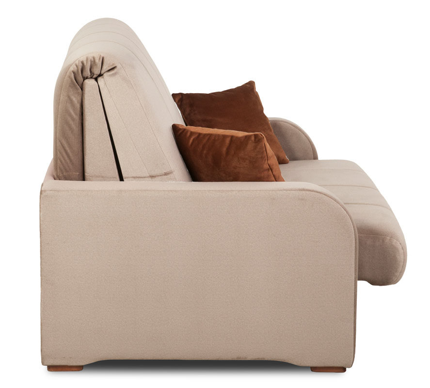 Jedną z najważniejszych cech tego produktu jest jego funkcja spania, która umożliwia szybkie i łatwe przekształcenie sofy w wygodne łóżko. Mechanizm rozkładania Clic-Clac zapewnia płynność i stabilność podczas procesu zmiany pozycji mebla. Po rozłożeniu sofa oferuje obszerną powierzchnię spania o wymiarach 113x195 cm, co sprawia, że jest doskonała zarówno do codziennego użytku, jak i na przyjęcia gości.