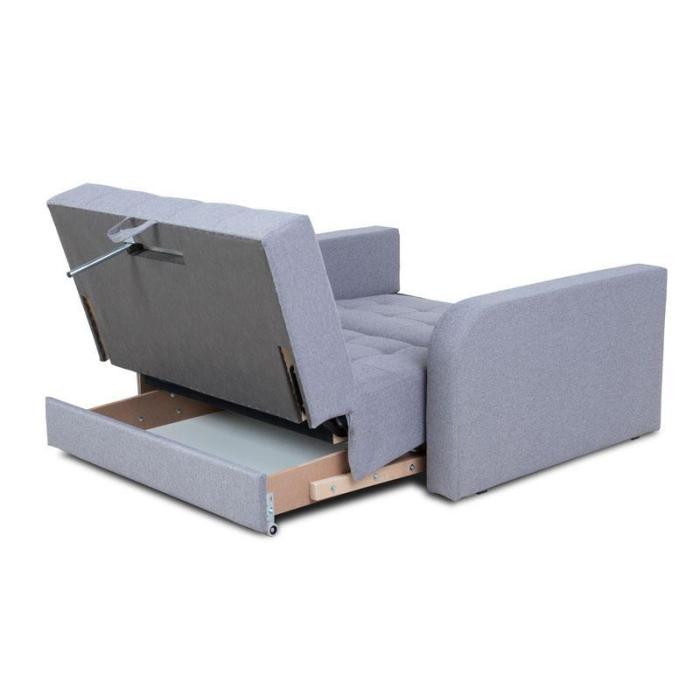 Sposób rozkładania to popularny w sofach "Wózek". Rozkładanie rozpoczynamy od wysunięcia do przodu, ukrytego pod siedziskiem wózka. Po rozłożeniu powierzchnia spania wynosi 110x185 cm. Zaleta tego typu rozkładania jest, brak konieczności odsuwania sofy od ściany. Kanapa posiada pojemnik na pościel, w którym zmieścimy kołdrę i poduszkę zapewniając porządek w pomieszczeniu.