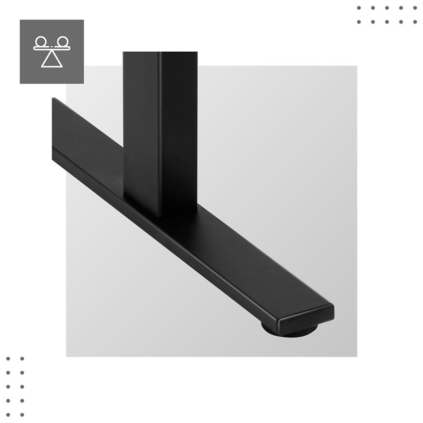 Stabilna, metalowa konstrukcja stelaża zapewnia solidność i trwałość. Wzmocnione nogi z regulowanymi stopkami gwarantują stabilność na różnych rodzajach podłóg, jednocześnie umożliwiając dostosowanie do nierówności.