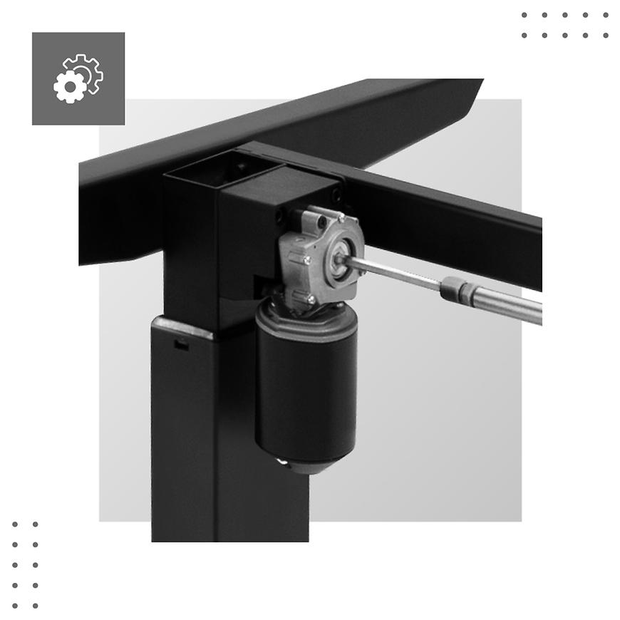 Ulepszony silnik o zwiększonym udźwigu gwarantuje płynne i ciche działanie stelaża. Bez względu na to, czy podnosisz czy opuszczasz blat, masz pewność, że operacja będzie wykonywana płynnie i bez hałasu, zapewniając komfortowe użytkowanie.