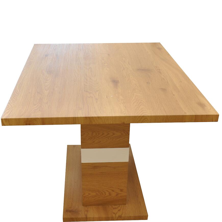 Stół jest najważniejszym meblem w każdym domu. To przy nim spotyka się cała rodzina. Stół JOVITA to utrzymany w ciepłej tonacji mebel w jasnej, drewnopodobnej kolorystyce. Mebel posiada kolumnową podstawę, co nadaje mu nowoczesnego charakteru. Produkt dostępny jest w wymiarach 160x90 cm oraz mierzy 75 cm.