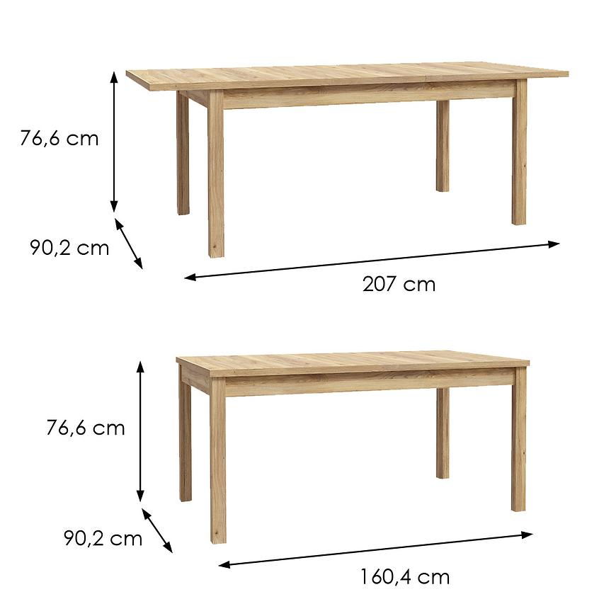 Wymiary stołu Alanya zostały starannie dobrane, aby zapewnić optymalne wykorzystanie przestrzeni. Jego wysokość wynosząca 76,6 cm, szerokość 90 cm oraz długość 160,4 cm pozwalają na komfortowe spożywanie posiłków. Jednak to po rozłożeniu, gdy osiąga długość 207 cm, staje się idealnym miejscem do przyjęć i spotkań rodzinnych.