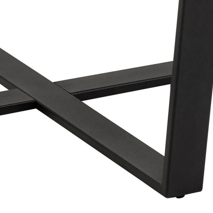 Blat stołu wykonano z wytrzymałej płyty MDF, a metalowy stelaż gwarantuje stabilność i trwałość mebla. Konstrukcja stołu jest nierozkładana, dzięki czemu jest idealnym rozwiązaniem do średnich przestrzeni, gdzie liczy się elegancja i funkcjonalność w kompaktowej formie.