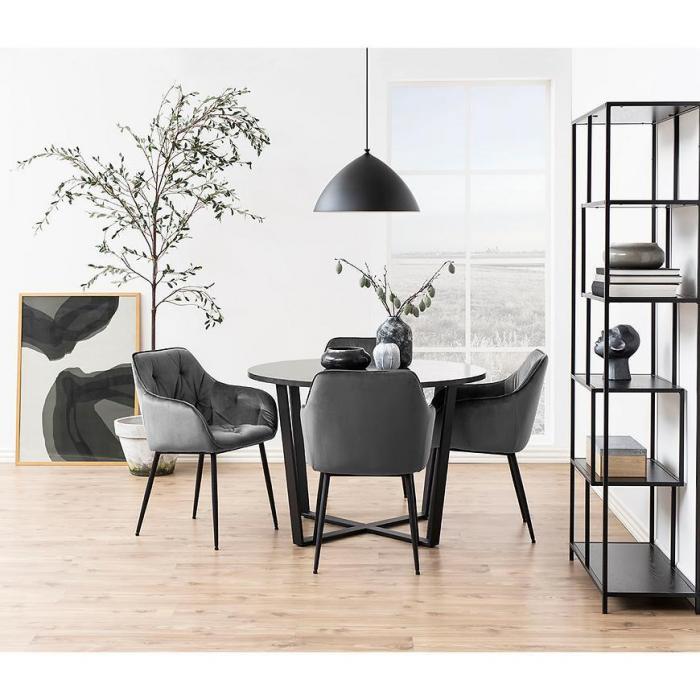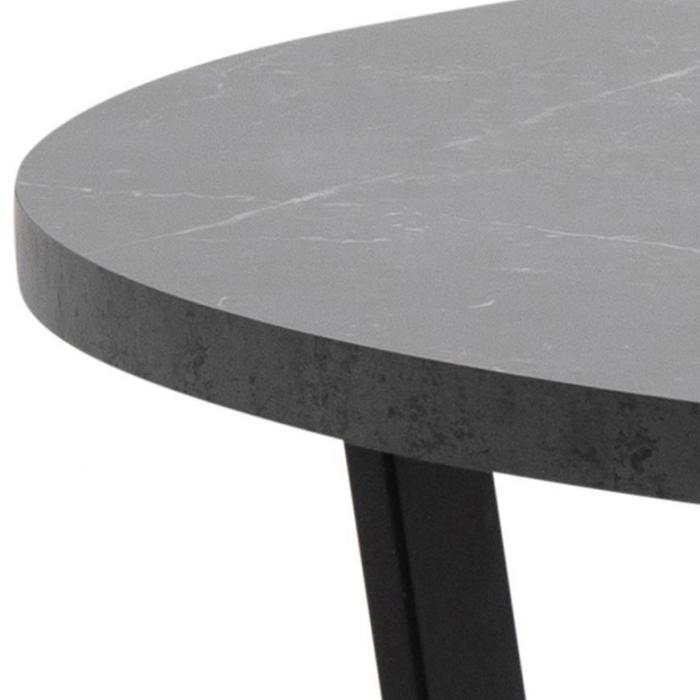 Stół Amble wyróżnia się okrągłym blatem w modnym wykończeniu czarny marmur, który nadaje wnętrzu stylowy i elegancki charakter. Matowa powierzchnia blatu podkreśla nowoczesny design stołu i ułatwia utrzymanie czystości, zapewniając wygodę codziennego użytkowania.