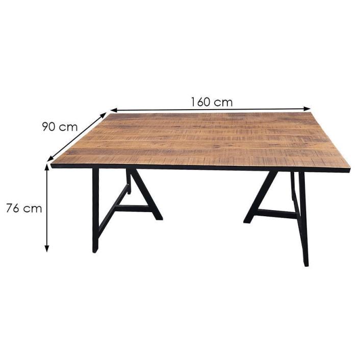 Stół Leo wykonany jest z drewna na metalowym stelażu, który zapewnia stabilność.