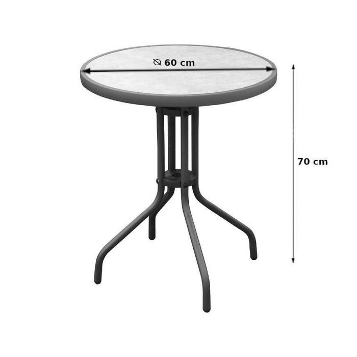Stolik bistro z blatem ze szkła hartowanego jest solidny i wielosezonowy. Idealnie wpasuje się w wystrój każdego balkonu, tarasu czy ogrodu. Metalowe nogi są wzmacniane okrągłym kołem plastikowym,a na końcach posiadają antypoślizgowe nakładki. Montaż jest bardzo łatwy i szybki: wystarczy włożyć nogi w tłoczone otwory pod blatem i zamontować kółko.