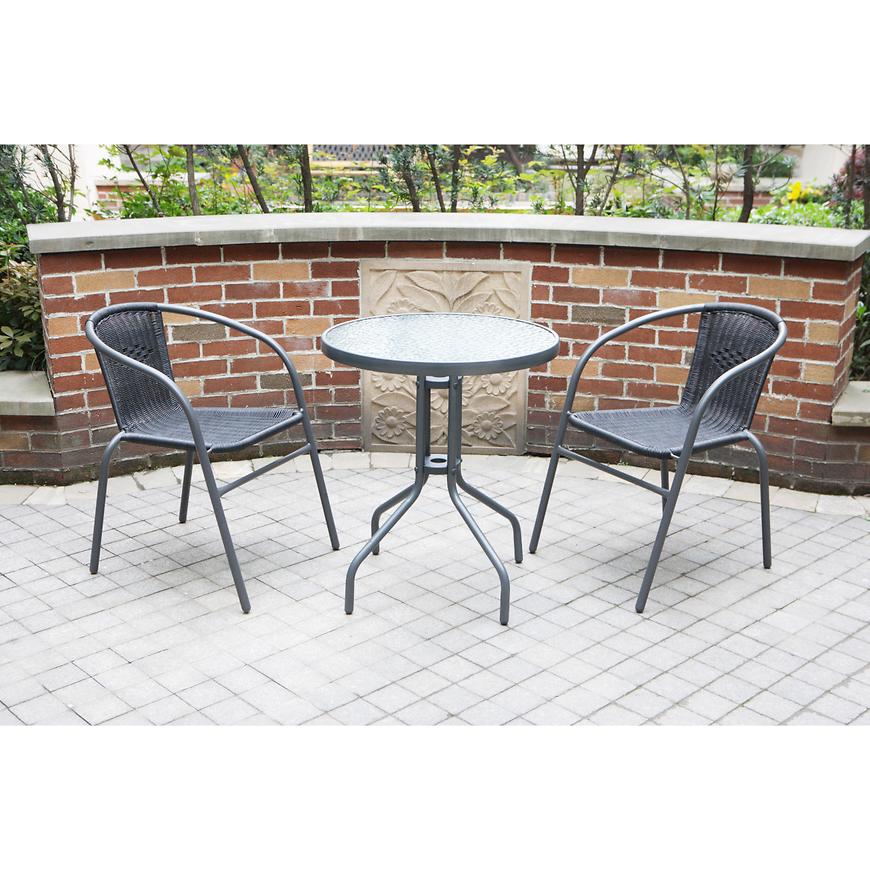 Stolik bistro z blatem ze szkła hartowanego jest solidny i wielosezonowy. Idealnie wpasuje się w wystrój każdego balkonu, tarasu czy ogrodu. Metalowe nogi są wzmacniane okrągłym kołem plastikowym, a na końcach posiadają antypoślizgowe nakładki. Montaż jest bardzo łatwy i szybki: wystarczy włożyć nogi w tłoczone otwory pod blatem i zamontować kółko.