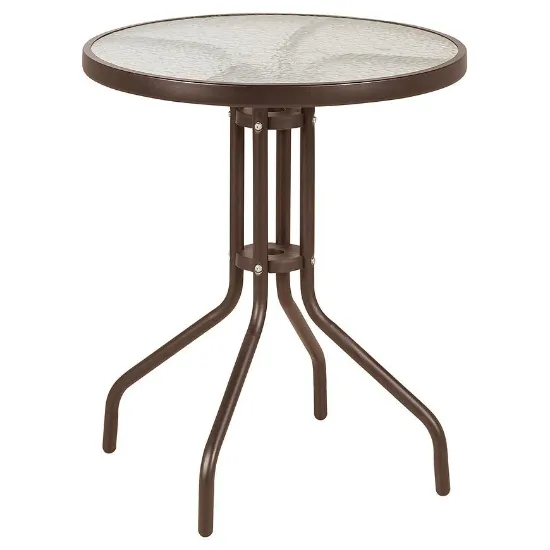 Stół Bistro XT3182 brąz to idealne połączenie nowoczesnego designu i solidnych materiałów, które sprawdzą się w domu, na balkonie, tarasie czy w przestrzeniach komercyjnych. Okrągły blat o średnicy 60 cm wykonano z hartowanego szkła w kolorze brązowym, odpornego na zarysowania, wysokie temperatury i wilgoć. Połączony z metalowym stelażem w tym samym odcieniu tworzy stabilną, trwałą konstrukcję, doskonale znoszącą codzienne użytkowanie.