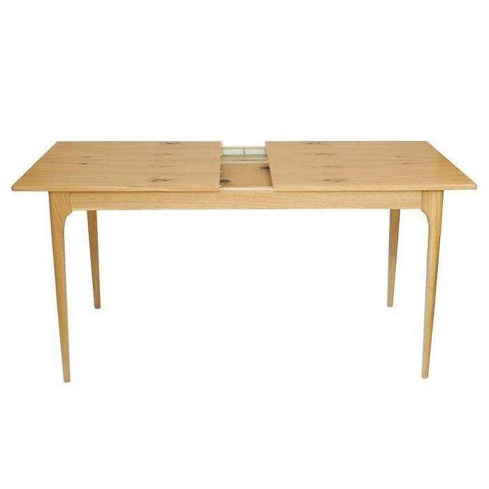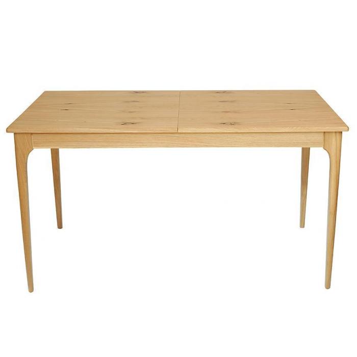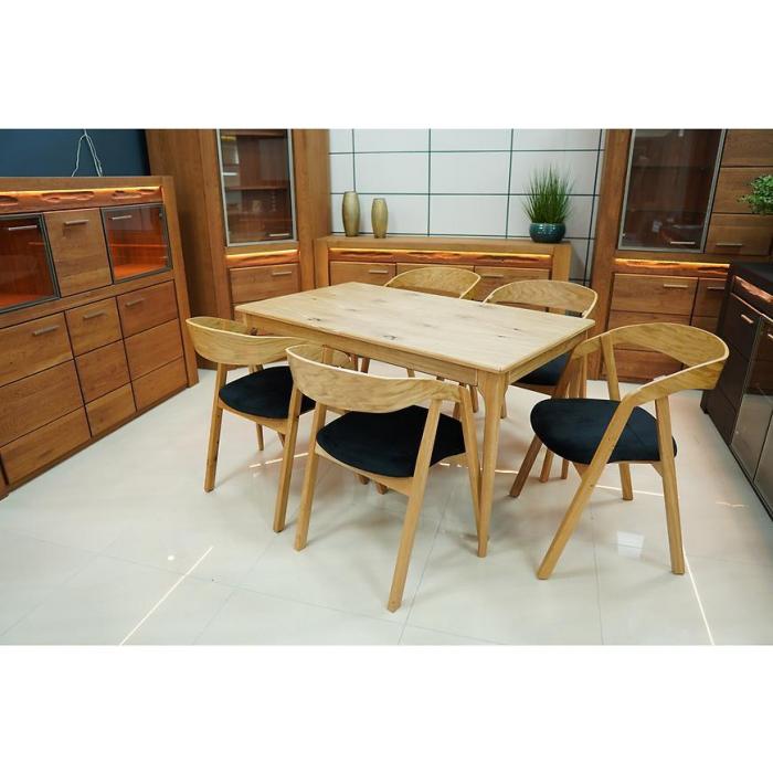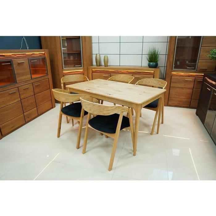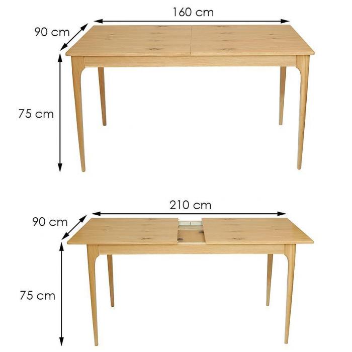 Blat wykonany z wysokiej jakości płyty meblowej z matowym wykończeniem jest odporny na codzienne użytkowanie i łatwy w czyszczeniu. Solidny drewniany stelaż zapewnia stabilność stołu, a naturalny kolor dębu pasuje do wnętrz w stylu klasycznym, nowoczesnym i skandynawskim.