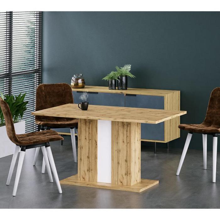 Stół Crosby Wotan/Biały to propozycja dla osób ceniących nowoczesny design i praktyczne rozwiązania w jadalni. Prostokątny blat w połączeniu kolorów wotan i biały tworzy elegancki kontrast, który doskonale komponuje się zarówno z klasycznymi, jak i loftowymi wnętrzami.