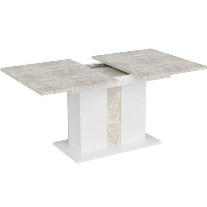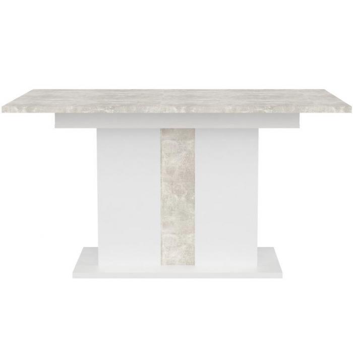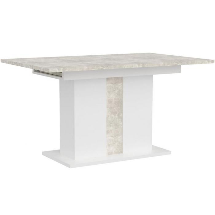 Rozkładany stół prostokątny, dla 8 osób, blat beton/biały, matowe wykończenie, laminowana płyta meblowa, nowoczesny design, wymaga montażu, idealny do jadalni i kuchni.