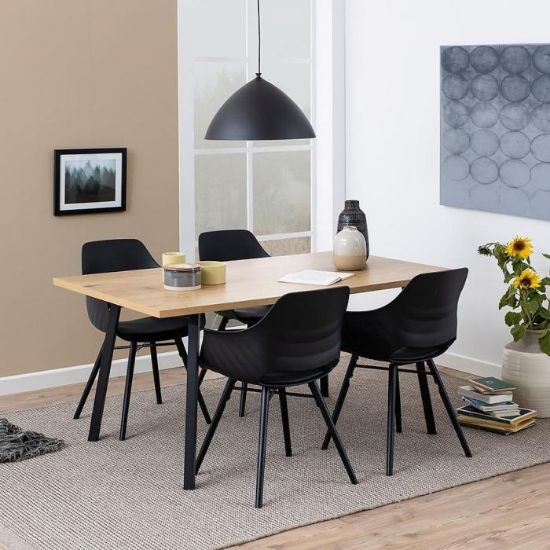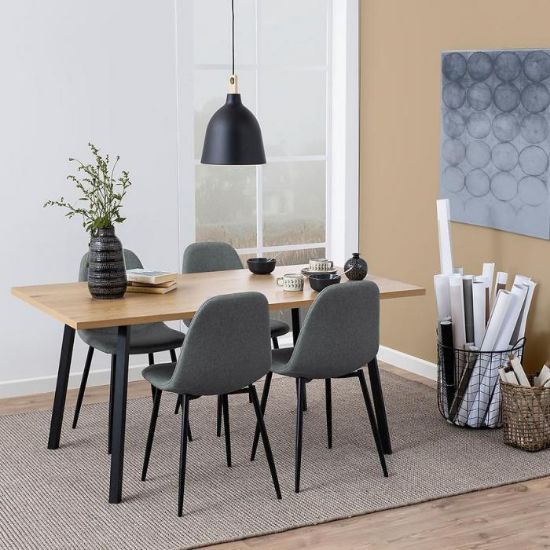Stół Cenny świetnie wpisze się w klasyczne, a zarazem nowoczesne wnętrza. Materiał blatu to płyta MDF, natomiast materiał nóg to metal. Stół posiada prostokątny blat w jasnym wybarwieniu.