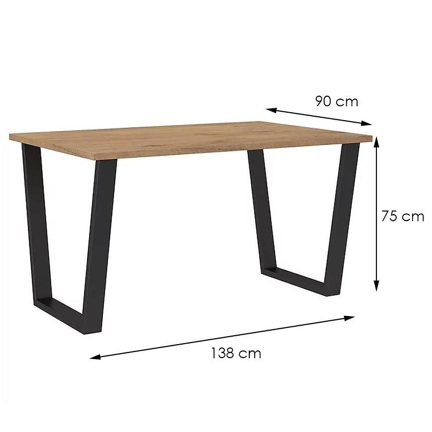 Stelaż stołu Cezar wykonany jest z wytrzymałego metalu, co nadaje mu industrialnego charakteru charakteryzującego styl loftowy. Solidna konstrukcja stelaża zapewnia stabilność i trwałość stołu. Blat stołu wykonany jest z płyty wiórowej laminowanej, co sprawia, że jest nie tylko trwały, ale także łatwy w utrzymaniu czystości. Matowe wykończenie blatu eliminuje odblaski świetlne, co sprawia, że jest on przyjemny dla oczu.