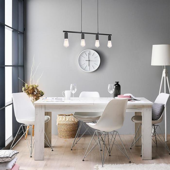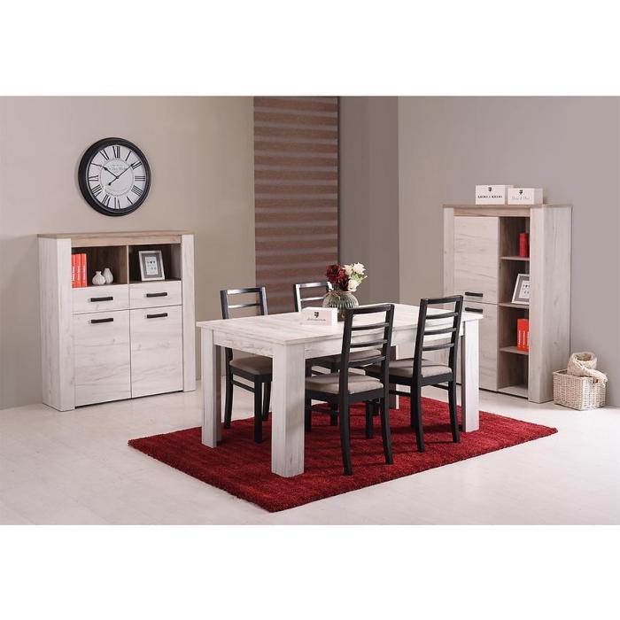 Doskonale wpasuje się we wnętrza w stylu nowoczesnym i klasycznym. Stół wykonany jest z płyty wiórowej laminowanej.