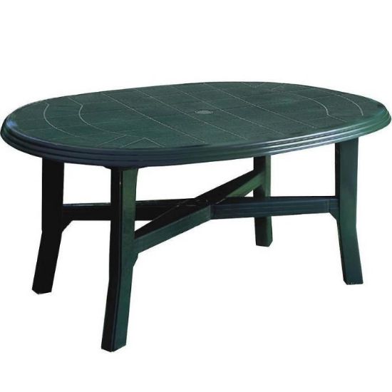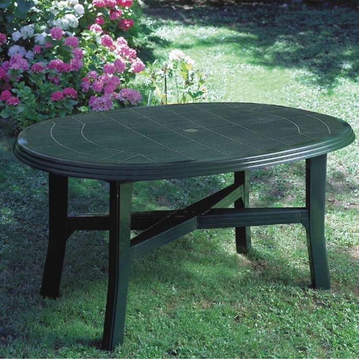 Stół Danubio zielony o wymiarach 72x110x165cm idealnie zespoi się z Twoim ogrodem czy tarasem i jego naturalnym otoczeniem.