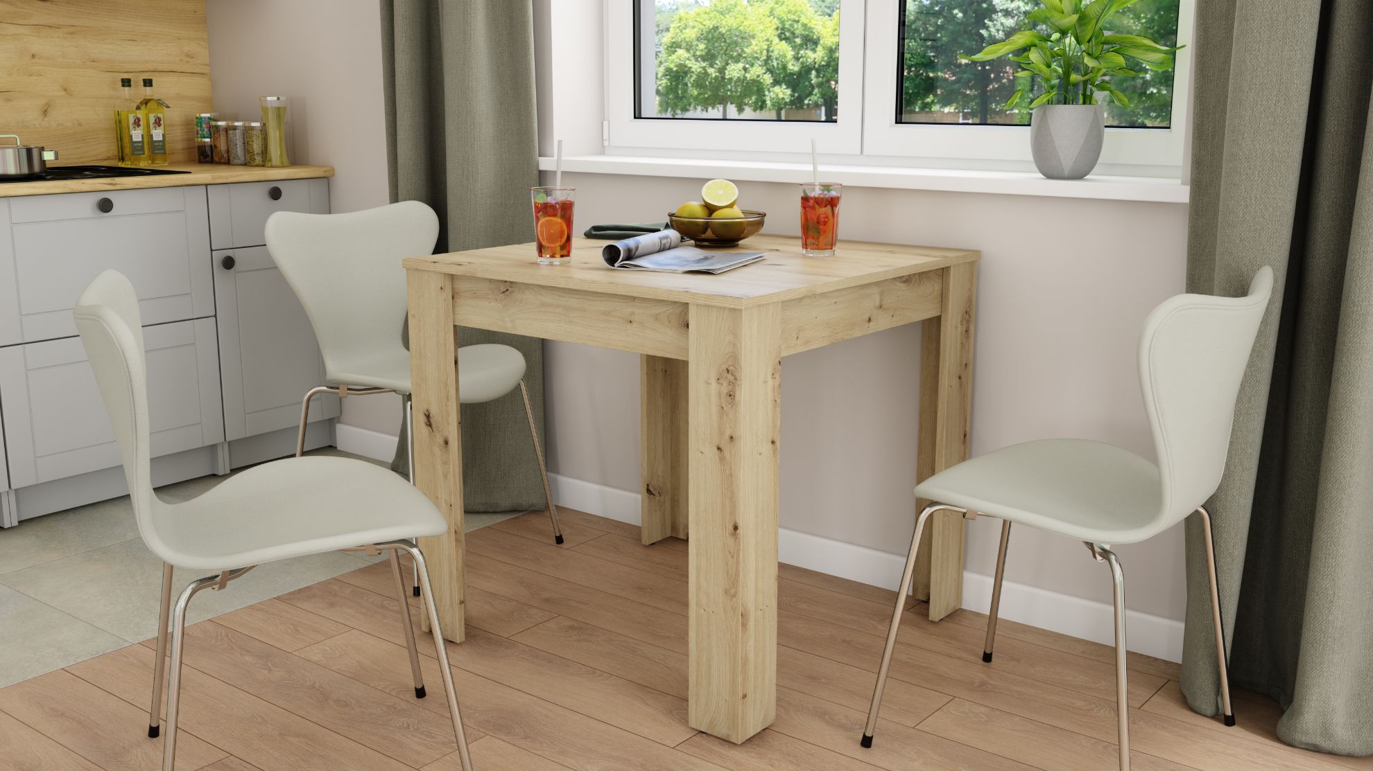 Stół Dave to doskonały wybór dla tych, którzy cenią sobie prostotę, funkcjonalność i elegancję w jednym. Wykonany z wysokiej jakości płyty laminowanej w pięknym odcieniu dębu artisan, ten stół nie tylko dodaje charakteru każdemu wnętrzu, ale także zapewnia trwałość i łatwość w utrzymaniu czystości.