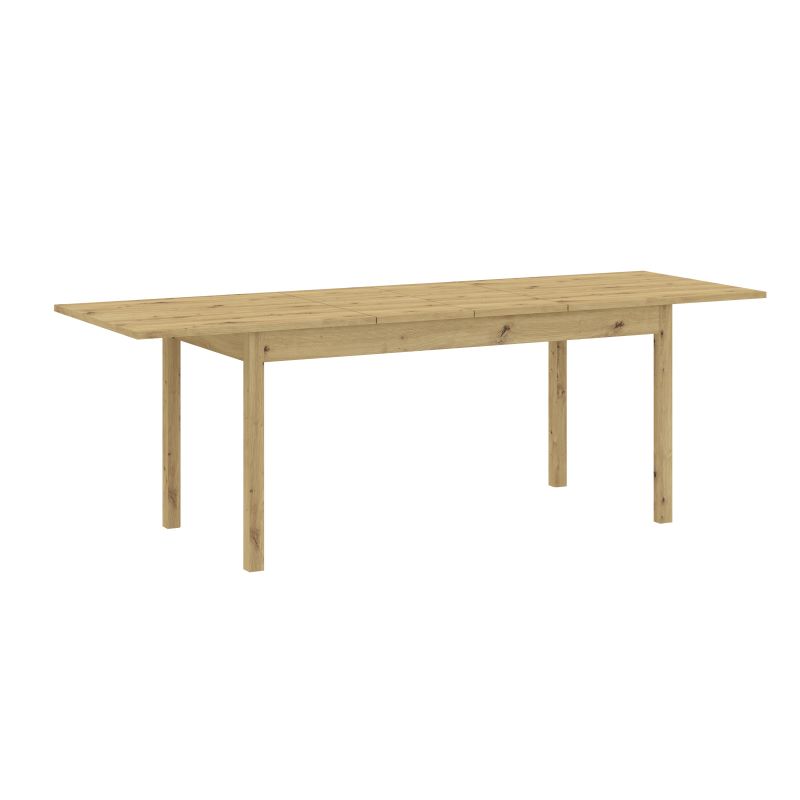 Stół DENIS 160 dąb artisan to elegancki i praktyczny mebel o prostokątnym kształcie, którego wymiary wynoszą 80x160x76,30 cm. Dzięki możliwości rozłożenia do 230 cm, stół doskonale sprawdzi się podczas większych spotkań rodzinnych czy przyjęć. Stół wyposażony jest w dwie wkładki umożliwiające jego rozłożenie.