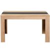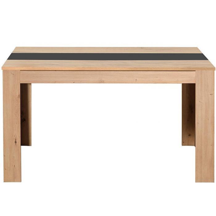 Stół Domus łączy funkcjonalność z nowoczesnym designem. Połączenie kolorów dąb artisan i czarny nadaje mu elegancki i stylowy charakter, który wpisuje się w różne aranżacje wnętrz – od klasycznych po nowoczesne. Prostokątny blat zapewnia komfort podczas codziennych posiłków dla 4 osób.