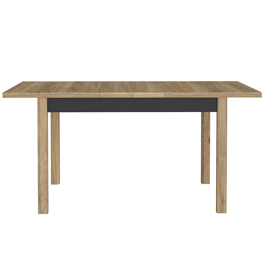 Stół Figila wyróżnia się swoją rozkładaną konstrukcją, co czyni go wszechstronnym meblem. Dzięki temu można dostosować jego rozmiar do potrzeb, a prostokątny kształt blatu sprzyja wygodnemu usadzeniu większej liczby osób przy stole.