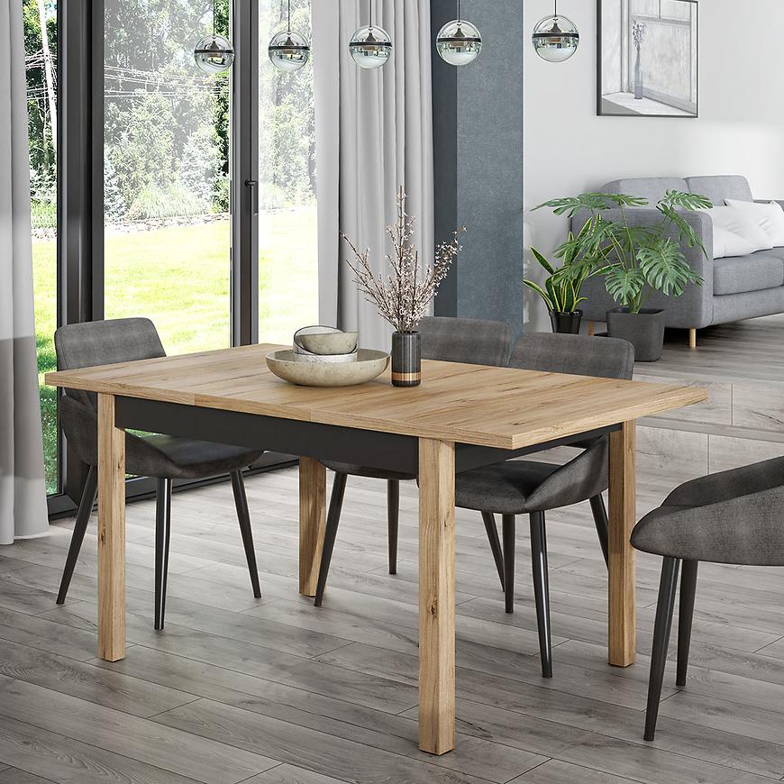 Wymiary stołu Figila zostały starannie dobrane, aby zapewnić optymalne wykorzystanie przestrzeni. Pozwalają na komfortowe spożywanie posiłków, a po rozłożeniu stół staje się idealnym miejscem do przyjęć i spotkań rodzinnych.