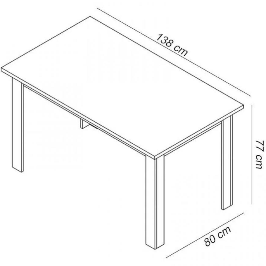 Mebel ma wymiary 77 cm wysokości, 80 cm szerokości i 138 cm długości przed rozłożeniem, co czyni go odpowiednim zarówno do pokoju dziennego, jadalki i kuchni.