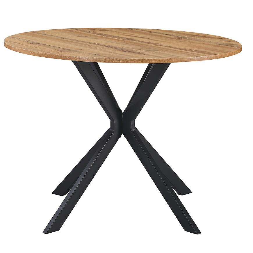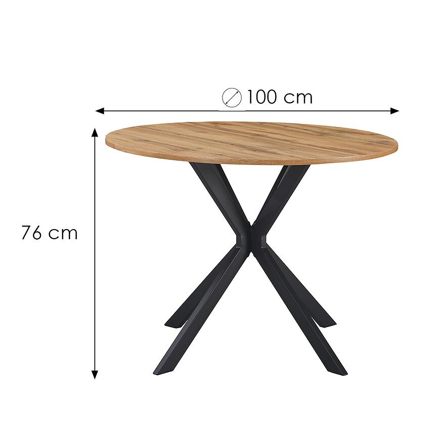 Stół Flint 12516 100x100 naturalny/czarny to elegancki i funkcjonalny mebel o okrągłym blacie. Wykonany z trwałej płyty MDF oraz stabilnego metalowego stelaża, zapewnia solidność i estetyczny wygląd. Naturalny blat z wykończeniem matowym dodaje lekkości i klasycznego charakteru. Stół ma wysokość 76 cm, szerokość 100 cm i długość 100 cm, przy wadze 14,3 kg. To praktyczny i stylowy model, który łączy trwałość, komfort użytkowania i klasyczny design, wymagający samodzielnego złożenia.