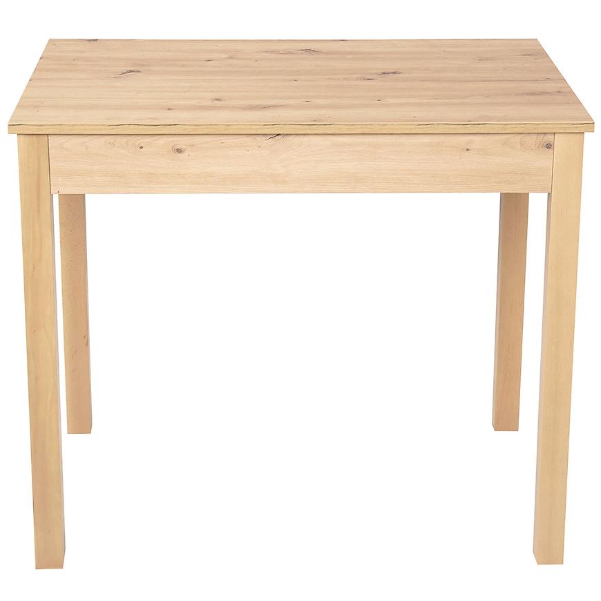 Blat stołu wykonany jest z płyty wiórowej laminowanej, co gwarantuje jego trwałość oraz łatwość w utrzymaniu w nienagannej czystości. Wykończenie blatu jest matowe, co dodaje stołu elegancji, a jednocześnie tworzy delikatny, aksamitny połysk.