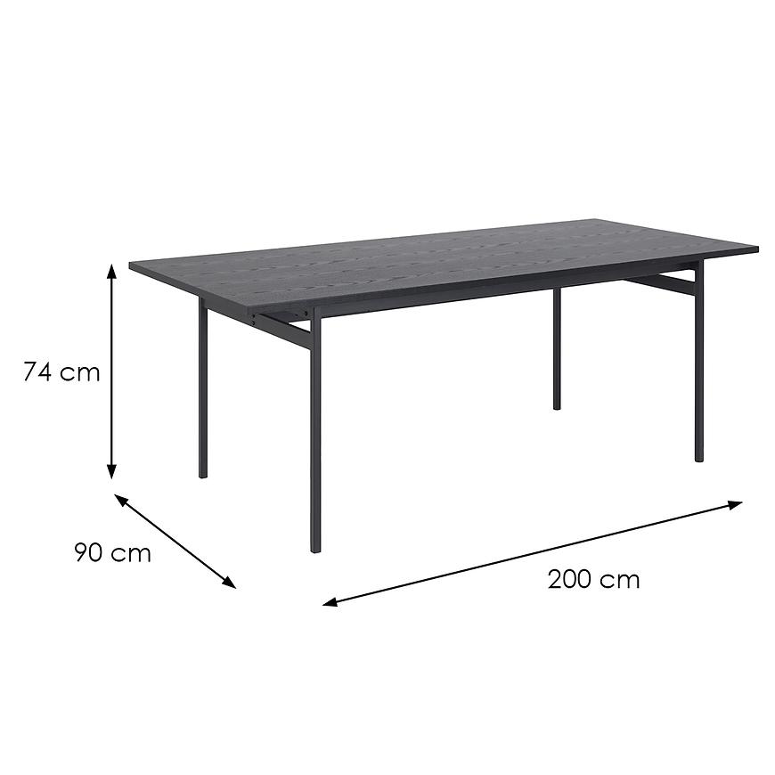 Prostokątny kształt blatu o wymiarach 90 cm na 200 cm tworzy przestrzeń idealną do wspólnych posiłków czy spotkań towarzyskich. Matowe wykończenie blatu nadaje stołowi elegancji, jednocześnie podkreślając charakter loftowego designu.