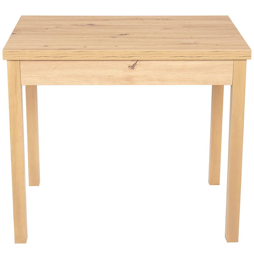 Blat stołu wykonany jest z płyty wiórowej laminowanej, co gwarantuje jego trwałość oraz łatwość w utrzymaniu w nienagannej czystości. Wykończenie blatu jest matowe, co dodaje stołu elegancji, a jednocześnie tworzy delikatny, aksamitny połysk.