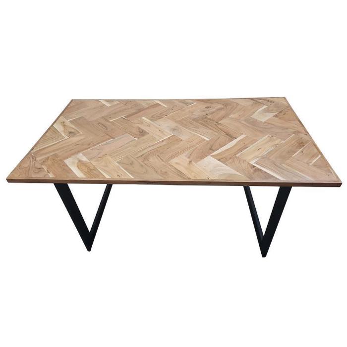 Stół Greg wykonany jest z drewna na metalowym stelażu, który zapewnia stabilność.