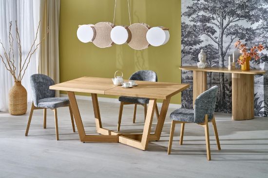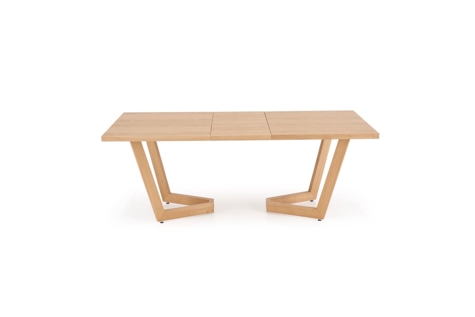 Solidny stelaż wykonany z drewna gwarantuje stabilność i wytrzymałość konstrukcji. Wymiary 160-250/90/77 cm oraz cztery nogi zapewniają wygodną przestrzeń przy posiłkach, a naturalny odcień dębu w połączeniu z klasycznym designem nadaje wnętrzu skandynawski i nowoczesny charakter.