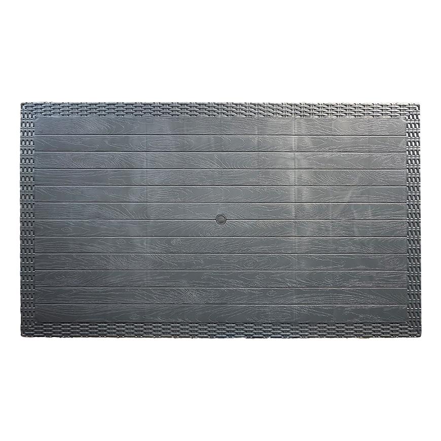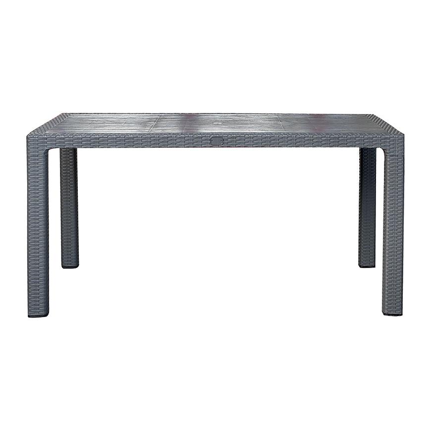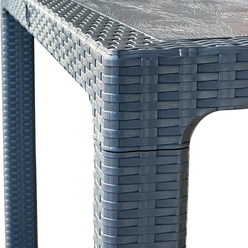 Blat i stelaż stołu zostały wykonane z wytrzymałego plastiku, co czyni go lekkim, łatwym w utrzymaniu czystości oraz odpornym na warunki atmosferyczne. Kolor szary dodaje mu nowoczesnego i uniwersalnego charakteru, który świetnie komponuje się z różnymi aranżacjami przestrzeni zewnętrznej.