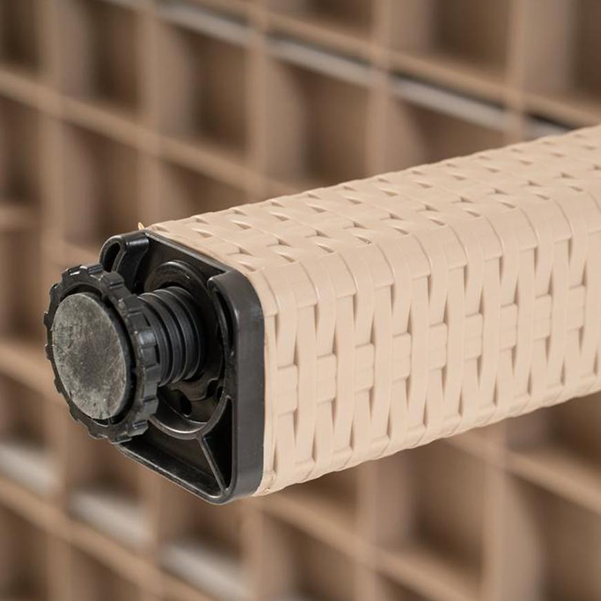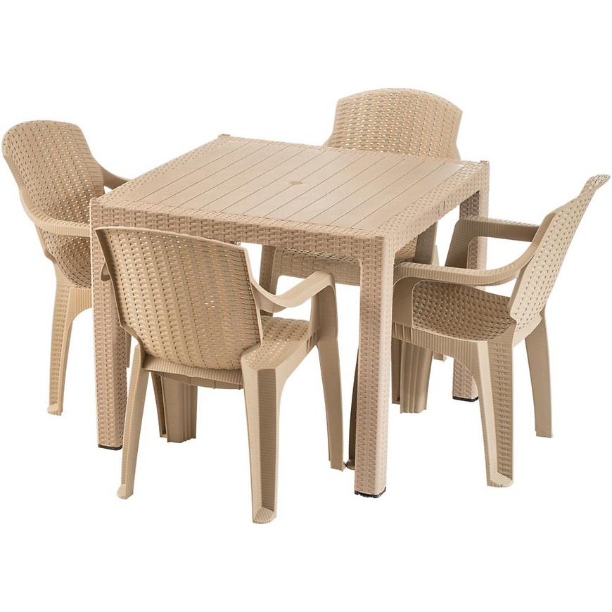 Wykonany z wytrzymałego plastiku, zarówno blat, jak i stelaż, zapewniają trwałość i odporność na warunki atmosferyczne. Kolor beżowy nadaje stołowi subtelnego i uniwersalnego wyglądu, który doskonale współgra z różnymi aranżacjami przestrzeni zewnętrznej.