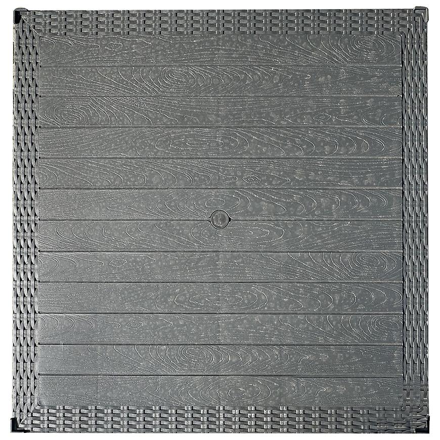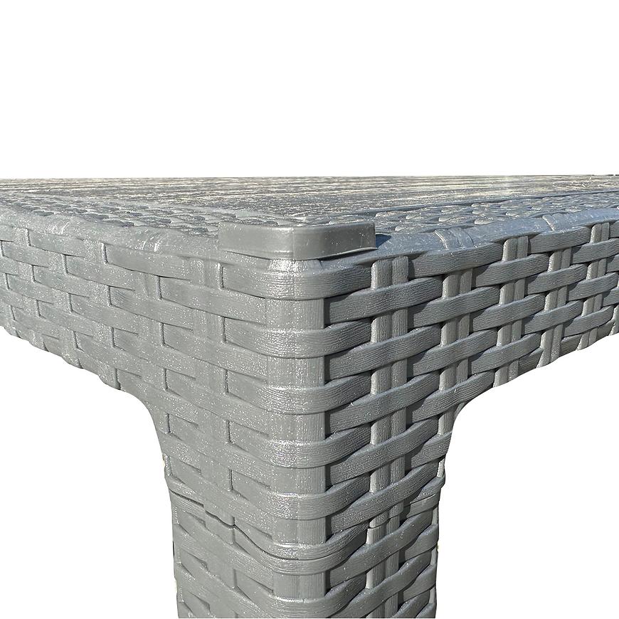 Wykonany z wytrzymałego plastiku, zarówno blat, jak i stelaż, zapewniają trwałość i odporność na warunki atmosferyczne. Kolor szary nadaje stołowi subtelnego i uniwersalnego wyglądu, który doskonale współgra z różnymi aranżacjami przestrzeni zewnętrznej.