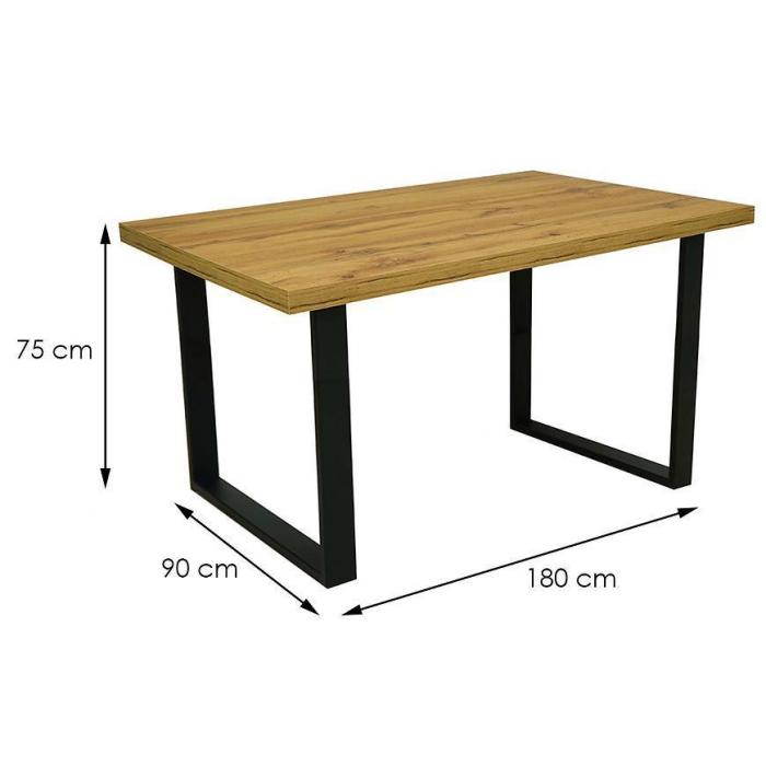 Stół to najważniejszy mebel w każdym domu. Stół Kamel w stylu loftowym nada niepowtarzalnego charakteru każdemu wnętrzu. Świetnie sprawdzi się zarówno w salonie, a także w kuchni. Mebel dostępny jest w wymiarach 180x90 cm i wysokości 75 cm. Blat wykonany z płyty wiórowej laminowanej oraz metalowego stelaża. Produkt do samodzielnego montażu.